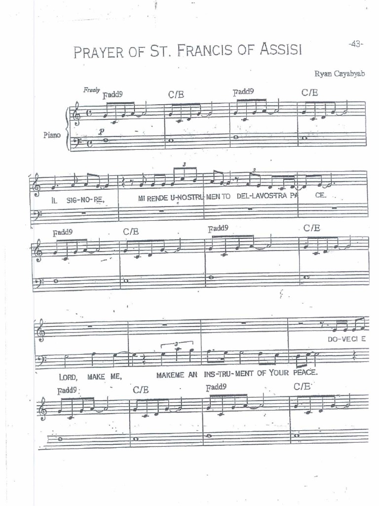 Download and print in PDF or MIDI free. Download as PDF TXT or read online from. Prayer of St Francis Music Score Ryan Cayabyab.